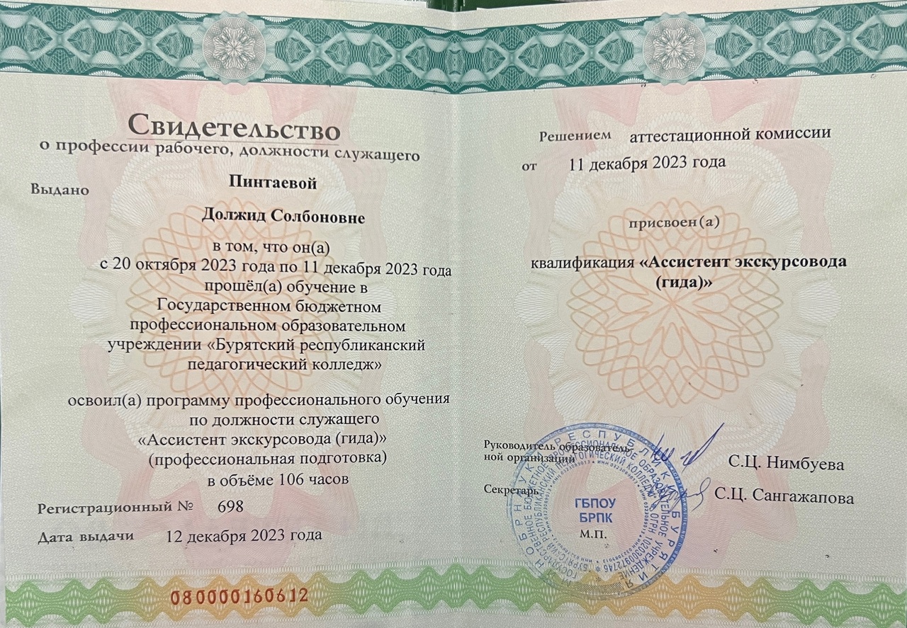 Профессиональное обучение по должности служащего «Ассистент экскурсовода(гида)» (профессиональная подготовка)